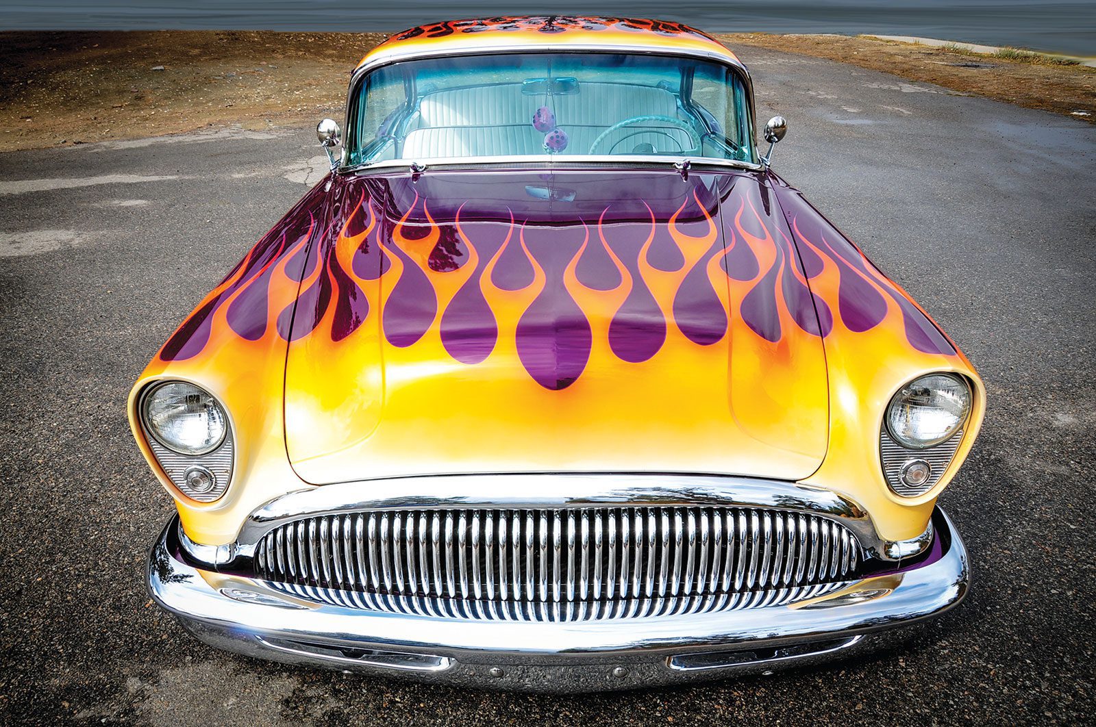 Joe Monahan’s 1954 Buick Special hardtop is a period-perfect 50’s style custom. Growing up in Southern California’s San Fernando Valley in the 1950’s, Joe was surrounded by the custom car and hot rod culture. “Great Balls of Fire” Buick reflects a lifetime love of the unique style.
